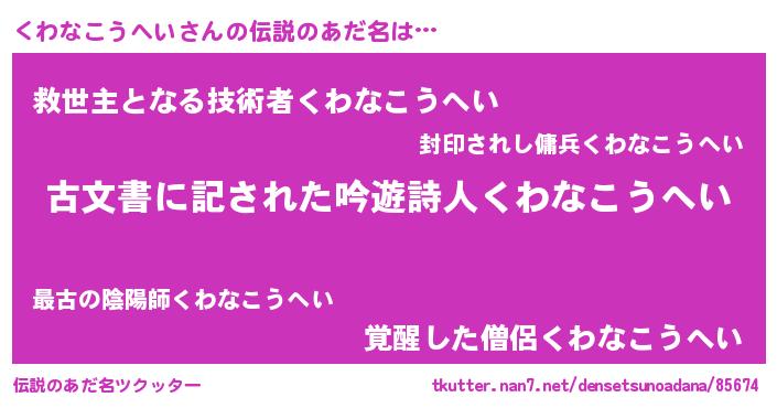 | 意味不明あだ名 | 『永久保存くわなこうへい』 |