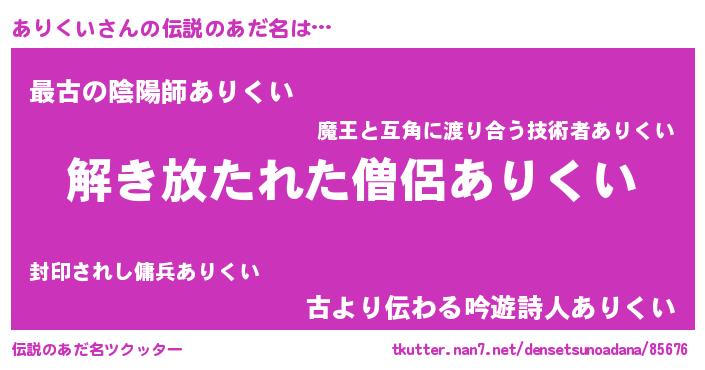 | 意味不明あだ名 | 『住所不定無職ありくい(68歳)』 |