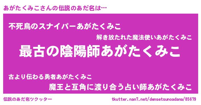| 意味不明あだ名 | 『自称あがたくみこ』 |