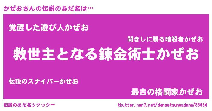 | ヒーロー風カッコイイあだ名 | 『天空の使者かぜお』『究極戦士カゼオ』 |