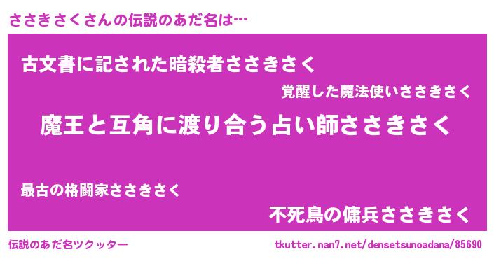 | 女子向けラノベタイトル風あだ名 | 『ささきさく恋絵巻』 |