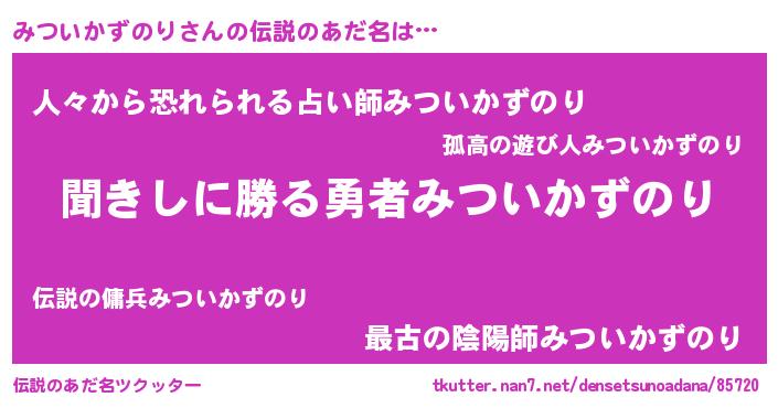 | 意味不明あだ名 | 『永久保存みついかずのり』 |