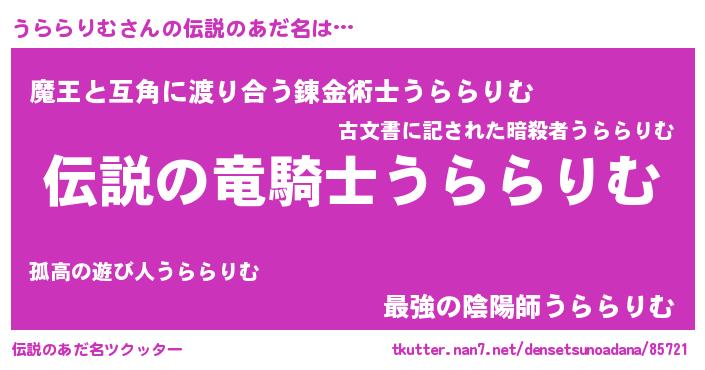 | 意味不明あだ名 | 『ペロリンうららりむ』『自称うららりむ』 |