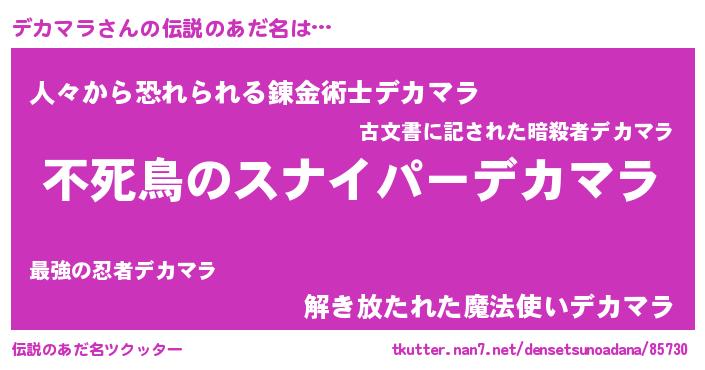 | ヒーロー風カッコイイあだ名 | 『仮面デカダー』『スーパーデカマラ』 |
