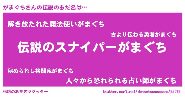 | 男性向けラノベタイトル風あだ名 | 『ガマグチスレイヤー』『緋弾のガマグチ』 |