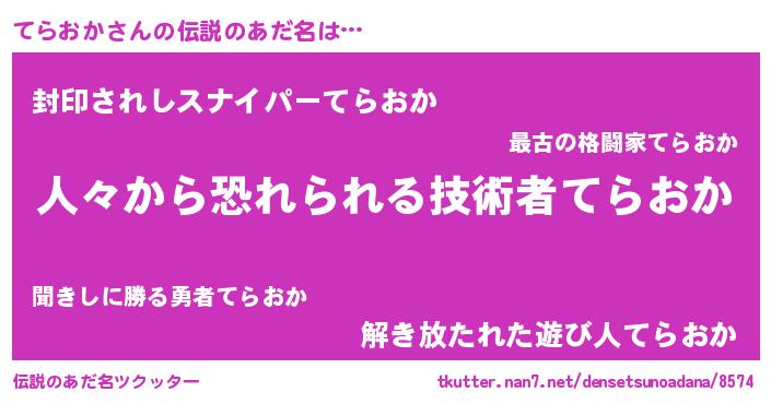 | ヒーロー風カッコイイあだ名 | 『仮面テラダー』『天空の使者てらおか』 |