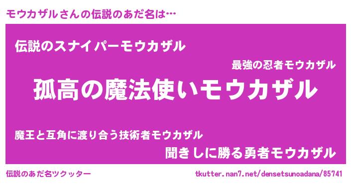 | ヒーロー風カッコイイあだ名 | 『魔戒騎士モウ』『スーパーモウカザル』 |