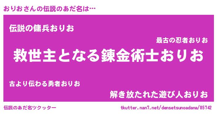 | ヒーロー風カッコイイあだ名 | 『慈愛の使者おりお』『スーパーオリオ』 |
