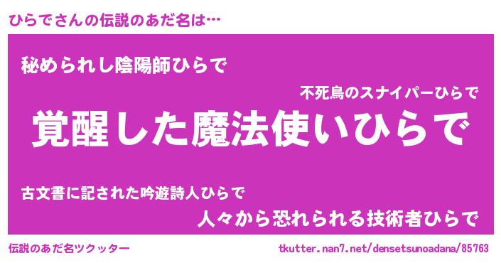 | ヒーロー風カッコイイあだ名 | 『幻影騎士ヒラ』『ウルトラひらでマン』 |