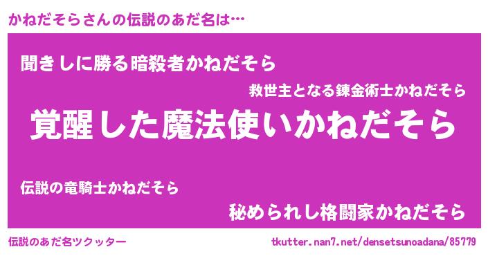 | 男性向けラノベタイトル風あだ名 | 『かねだそらの嫁は女の子じゃないと思った?』 |