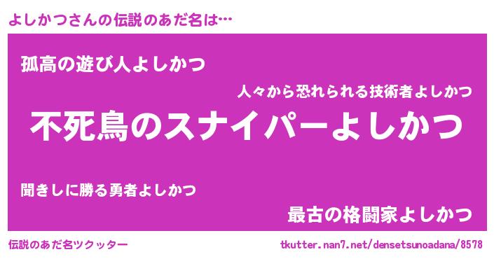 | ヒーロー風カッコイイあだ名 | 『スーパーヨシカツ』『魔戒騎士ヨシ』 |