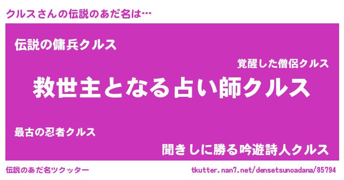 | 意味不明あだ名 | 『眠気覚ましガムクルス味』『自称クルス』 |