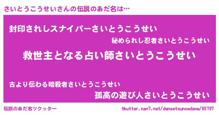 | ヒーロー風カッコイイあだ名 | 『天空の使者さいとうこうせい』 |