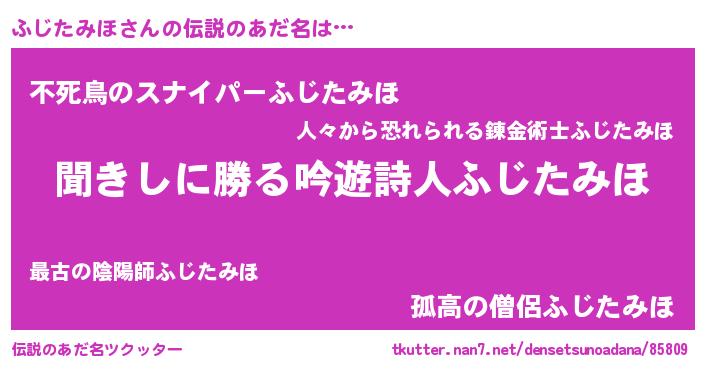 | 意味不明あだ名 | 『永久保存ふじたみほ』『自称ふじたみほ』 |