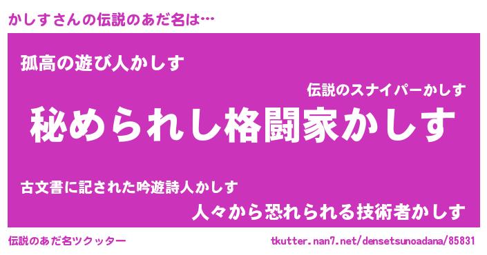 | ヒーロー風カッコイイあだ名 | 『ウルトラかしすマン』『幻影騎士カシ』 |