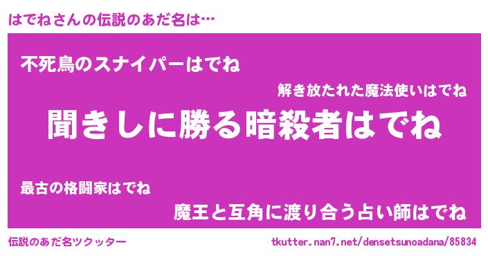 | ヘコむあだ名 | 『はでね(笑)』『はでにゅー』 |