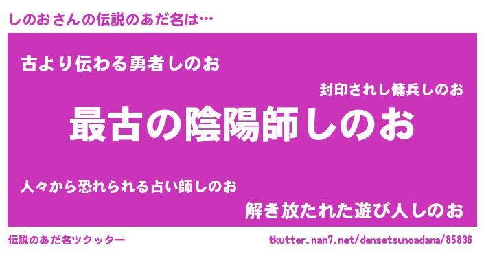 | ヒーロー風カッコイイあだ名 | 『仮面シノダー』『ウルトラしのおマン』 |