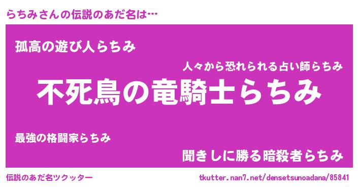 | 意味不明あだ名 | 『住所不定無職らちみ(13歳)』『自称らちみ』 |