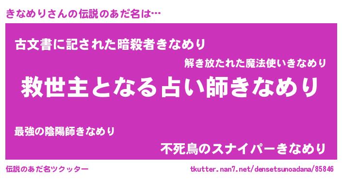 | ヒーロー風カッコイイあだ名 | 『天空の使者きなめり』『ネオキナメリ』 |