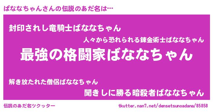 | ヒーロー風カッコイイあだ名 | 『ウルトラばななちゃんマン』 |