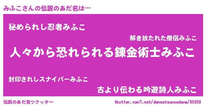 | 意味不明あだ名 | 『眠気覚ましガムみふこ味』『自称みふこ』 |