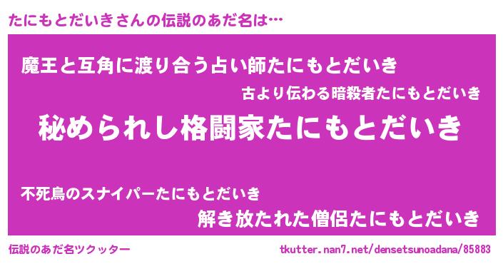 | 意味不明あだ名 | 『住所不定無職たにもとだいき(7歳)』 |