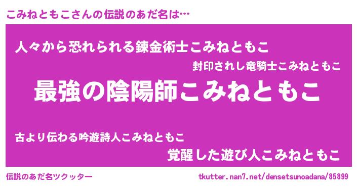 | 男性向けラノベタイトル風あだ名 | 『この素晴らしい世界にこみねともこを!』 |