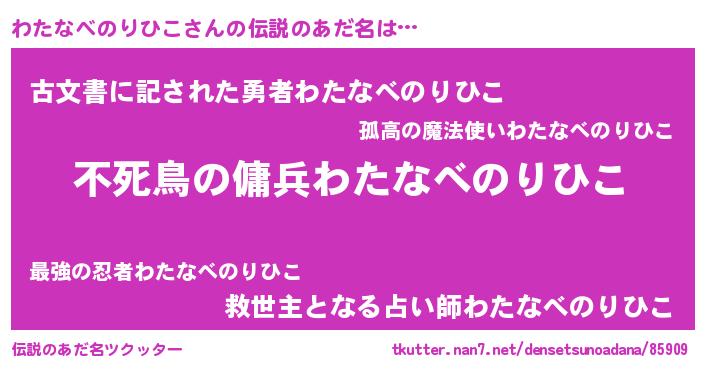 | 男性向けラノベタイトル風あだ名 | 『わたなべのりひこに滅ぼされるだけの簡単なお仕事です』 |