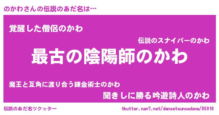 | 料理風あだ名 | 『のかわごはん』『のかわの豆乳スープ』 |
