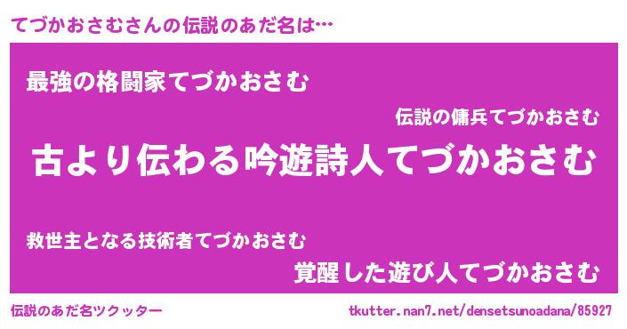 | 意味不明あだ名 | 『住所不定無職てづかおさむ(13歳)』 |