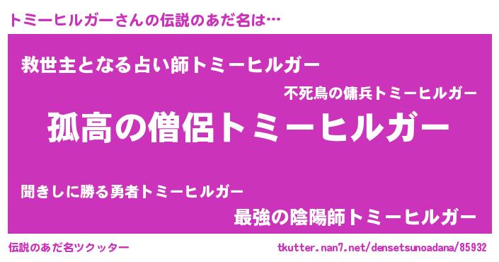 | 欧米人風あだ名 | 『ウサイントミーヒルガー』 |