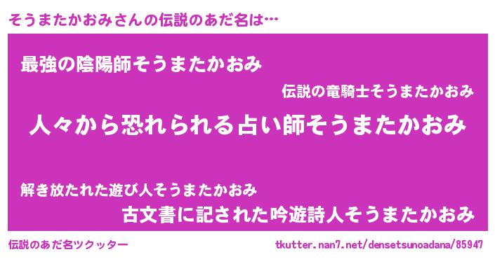 | ヒーロー風カッコイイあだ名 | 『正義の使者そうまたかおみ』 |