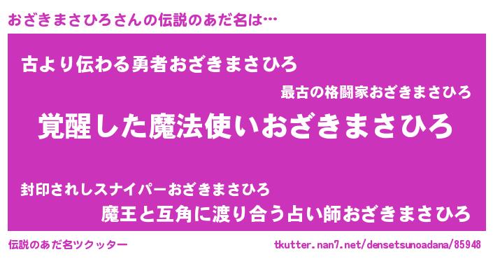 | 意味不明あだ名 | 『とにかく怪しいおざきまさひろ』 |