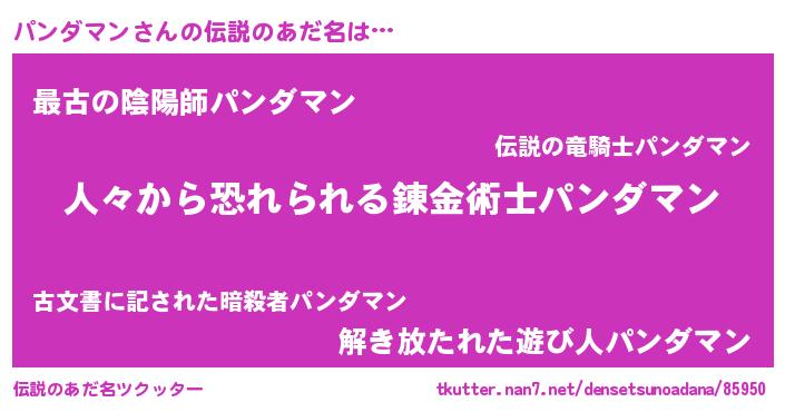 | 女子向けラノベタイトル風あだ名 | 『パンダマン夫妻のなれそめ』 |