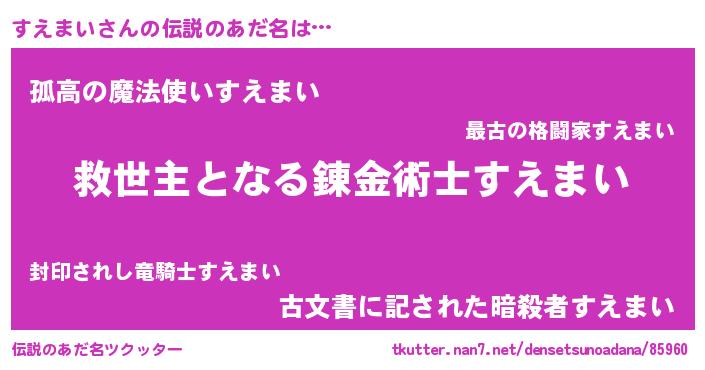 | ヒーロー風カッコイイあだ名 | 『慈愛の使者すえまい』『黄金騎士スエ』 |