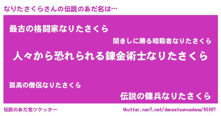 | 女子向けラノベタイトル風あだ名 | 『なりたさくら夫妻のなれそめ』 |
