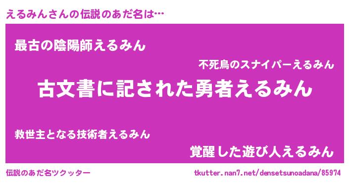 | 意味不明あだ名 | 『自称えるみん』『永久保存えるみん』 |