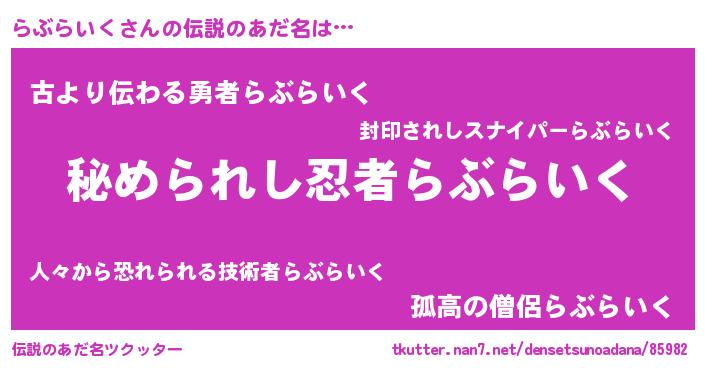 | 意味不明あだ名 | 『自称らぶらいく』『永久保存らぶらいく』 |