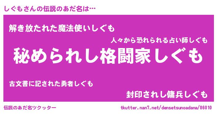 | 男性向けラノベタイトル風あだ名 | 『シグモスレイヤー』『魔弾の王としぐも』 |