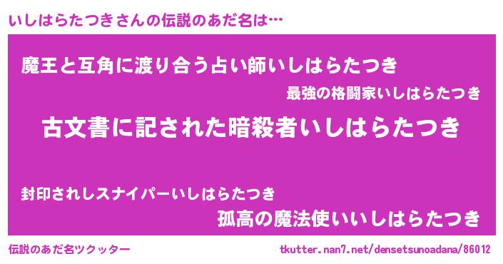 | 意味不明あだ名 | 『永久保存いしはらたつき』 |