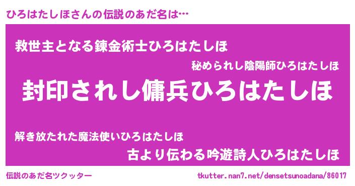 | ヘコむあだ名 | 『ひろにゅー』『ひろはたしほ(遠い目)』 |