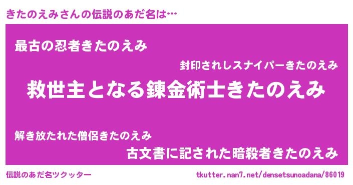 | 意味不明あだ名 | 『自称きたのえみ』『永久保存きたのえみ』 |