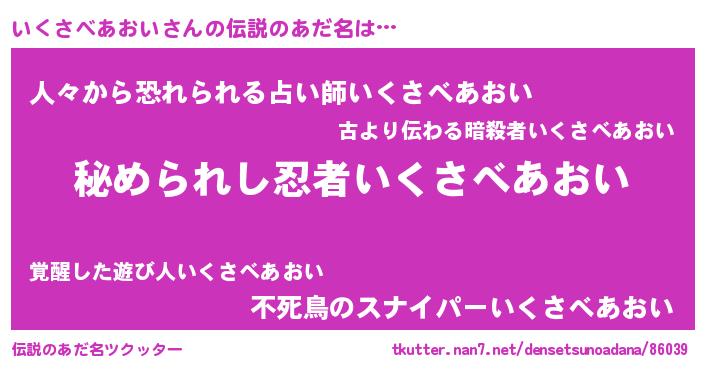 | 恥ずかしいあだ名 | 『イクサベアオイデラックス』『いくちん』 |