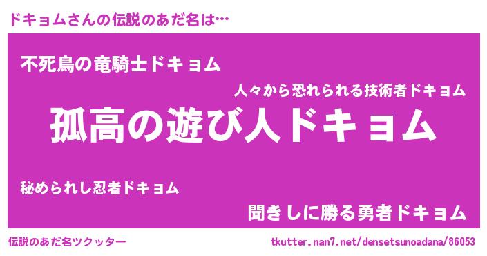 | 意味不明あだ名 | 『とにかく怪しいドキョム』 |