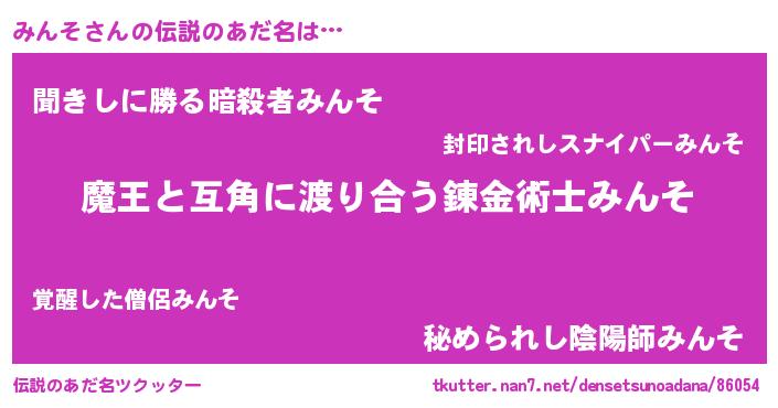 | 女子向けラノベタイトル風あだ名 | 『みんそ恋絵巻』『みんそ伯爵の花嫁』 |