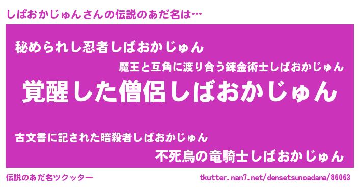 | 男性向けラノベタイトル風あだ名 | 『しばおかじゅん~年齢イコール彼女いない歴の魔法使い~』 |