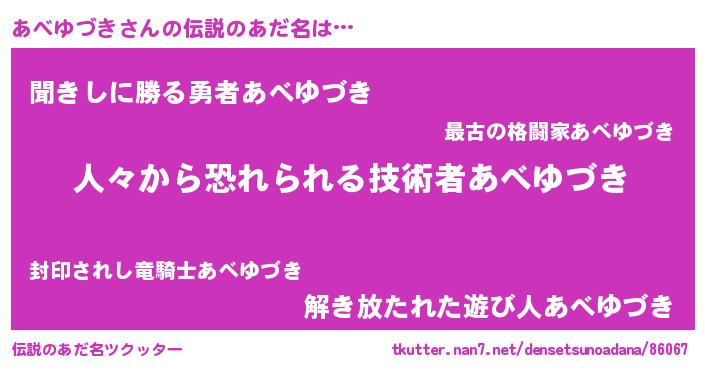 | ヒーロー風カッコイイあだ名 | 『正義の使者あべゆづき』『銀牙騎士アベ』 |