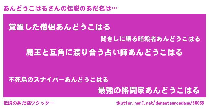 | 胡散臭い通販商品みたいなあだ名 | 『テレビで話題のアガリクス…その名も「あんどうこはる」』 |