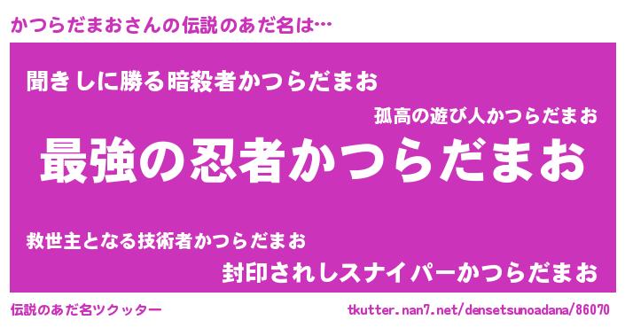 | 意味不明あだ名 | 『住所不定無職かつらだまお(40歳)』 |