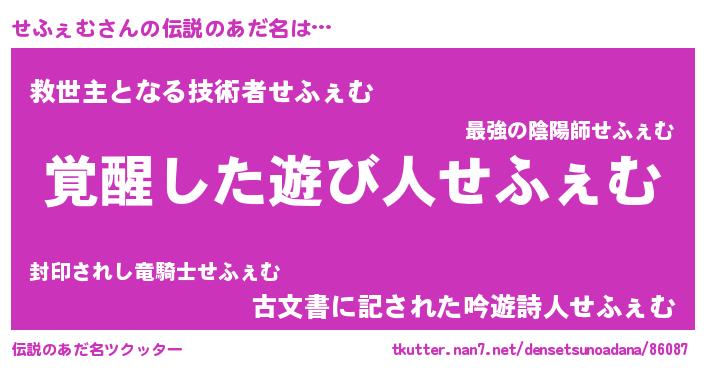 | ヒーロー風カッコイイあだ名 | 『炎刃騎士セフ』『慈愛の使者せふぇむ』 |